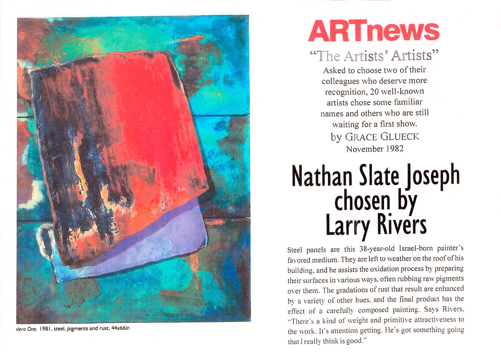 "Nathan Slate Joseph's work uniquely combines the large-scale exuberance of Abstract Expressionism with the laissez-faire mellowness of found-object art."