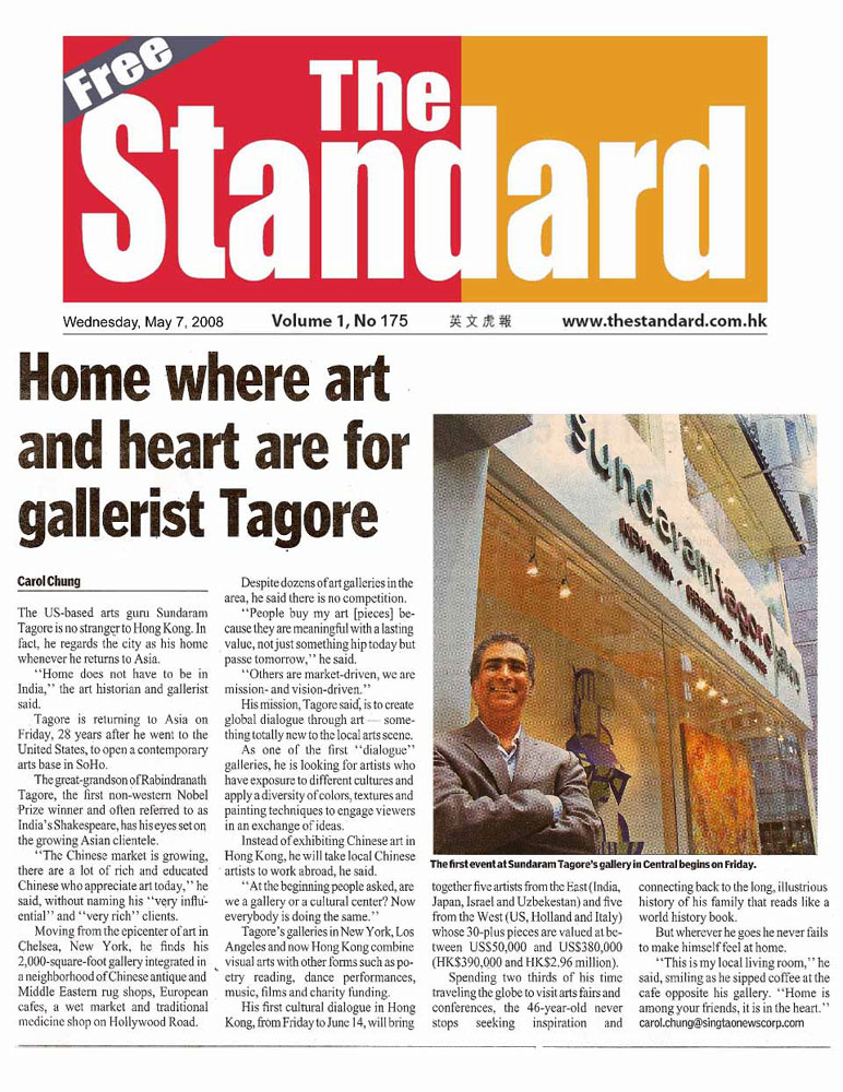"Sundaram Tagore, a New York-based curator and gallerist, has announced the opening of a Hong Kong Gallery. The Gallery focuses on a dialogue between the cultures of East a West while filling the need for better representation of international art in Hong Kong."
