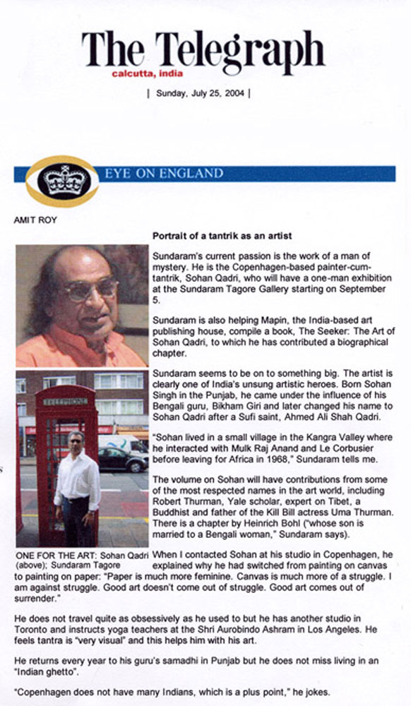 "Artist, poet Tantric guru Sohan Qadri has been immersed in painting and mediation for more than 30 years."