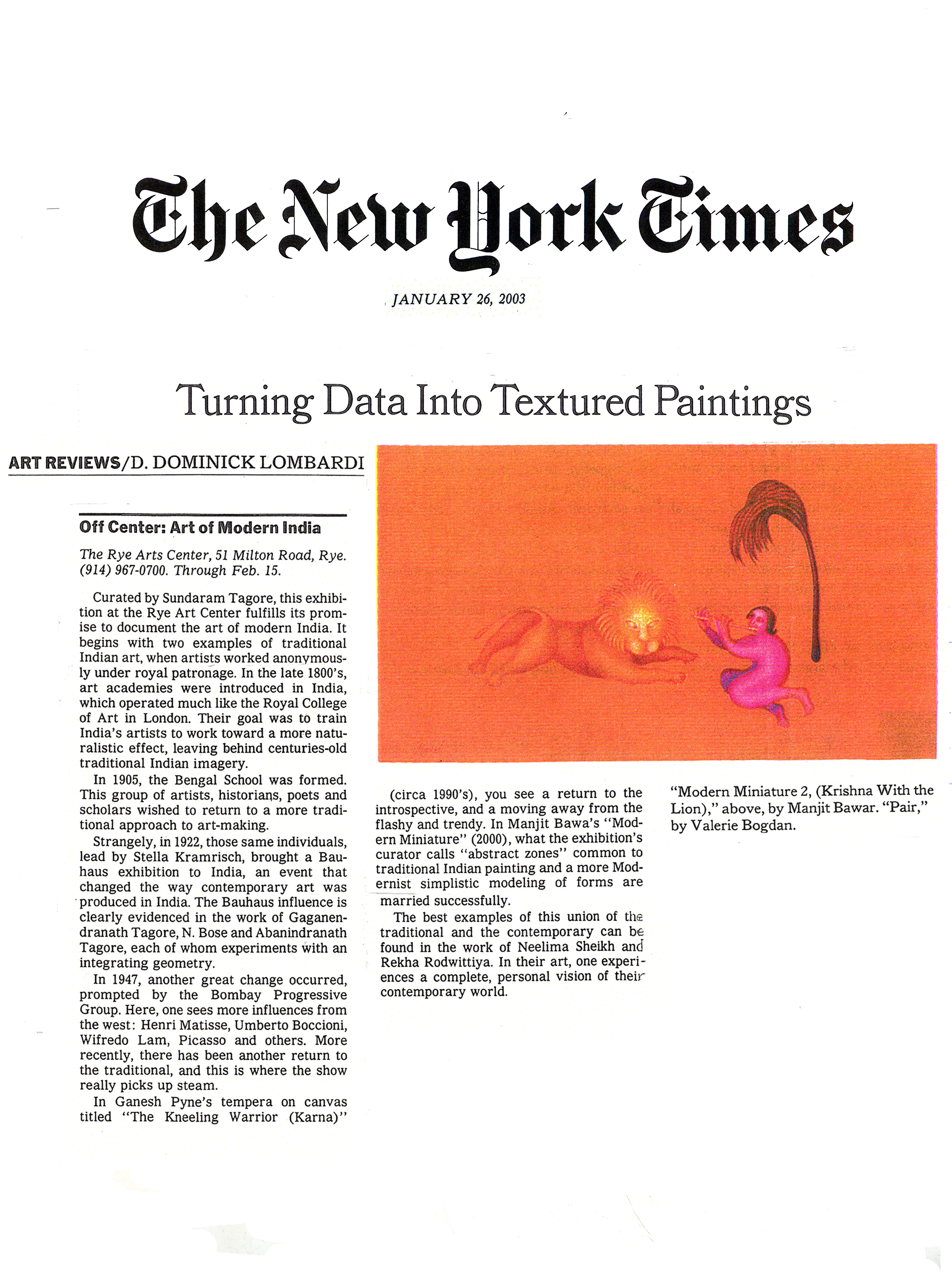 "Curated by Sundaram Tagore this exhibition at the Rye Art Center fulfills its promise to document the art of modern India."