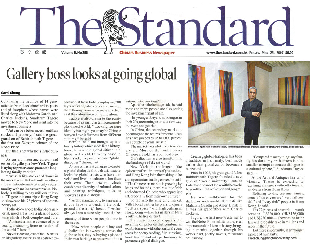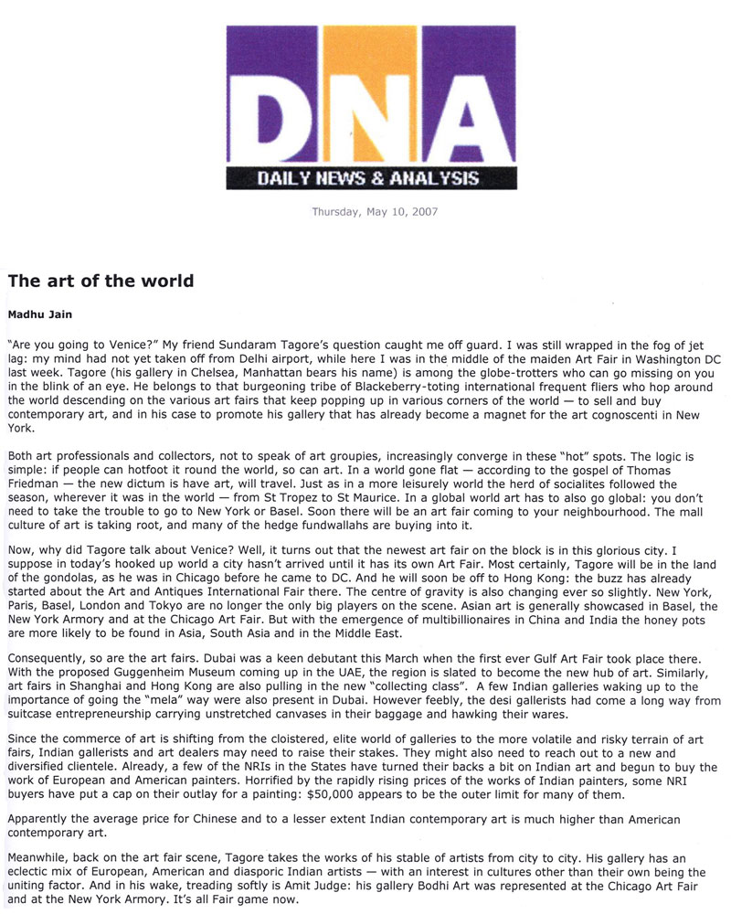 " Tagore takes the works of his stable of artists from city to city. His gallery has an eclectic mix of European, American, and diasporic Indian artists..."